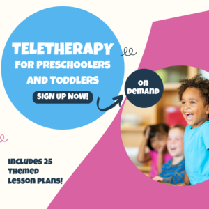 I hope you’ve found these tips to be helpful as you plan your sessions with your toddlers (and preschoolers). I have developed an online course that has 25 themed lesson plans that include all of the books and activities planned out for you. Click here to enroll in my Teletherapy for Preschoolers and Toddlers course, or you can get the Themed Lesson Plans here.